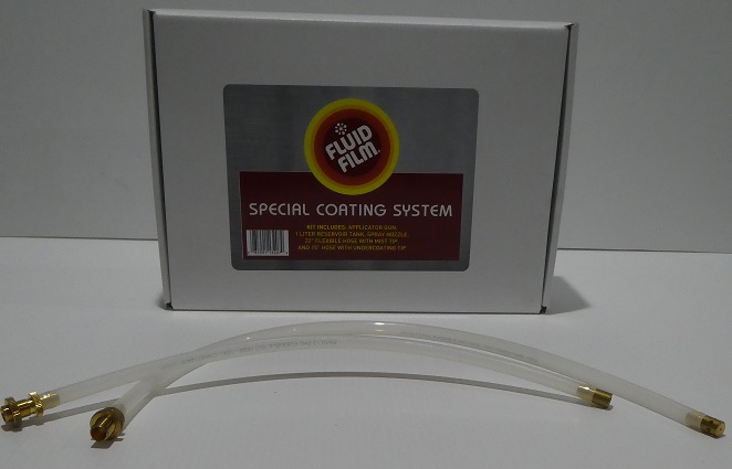FFSG is an undercoating application system designed for use of Fluid Film (NAS) non-aerosol. The kit includes a quart sized bottle, gun, adjustable nozzle, 15” flexible wand and a 22″ flexible 360 degree spray wand. The gun is rated for 175 PSI.